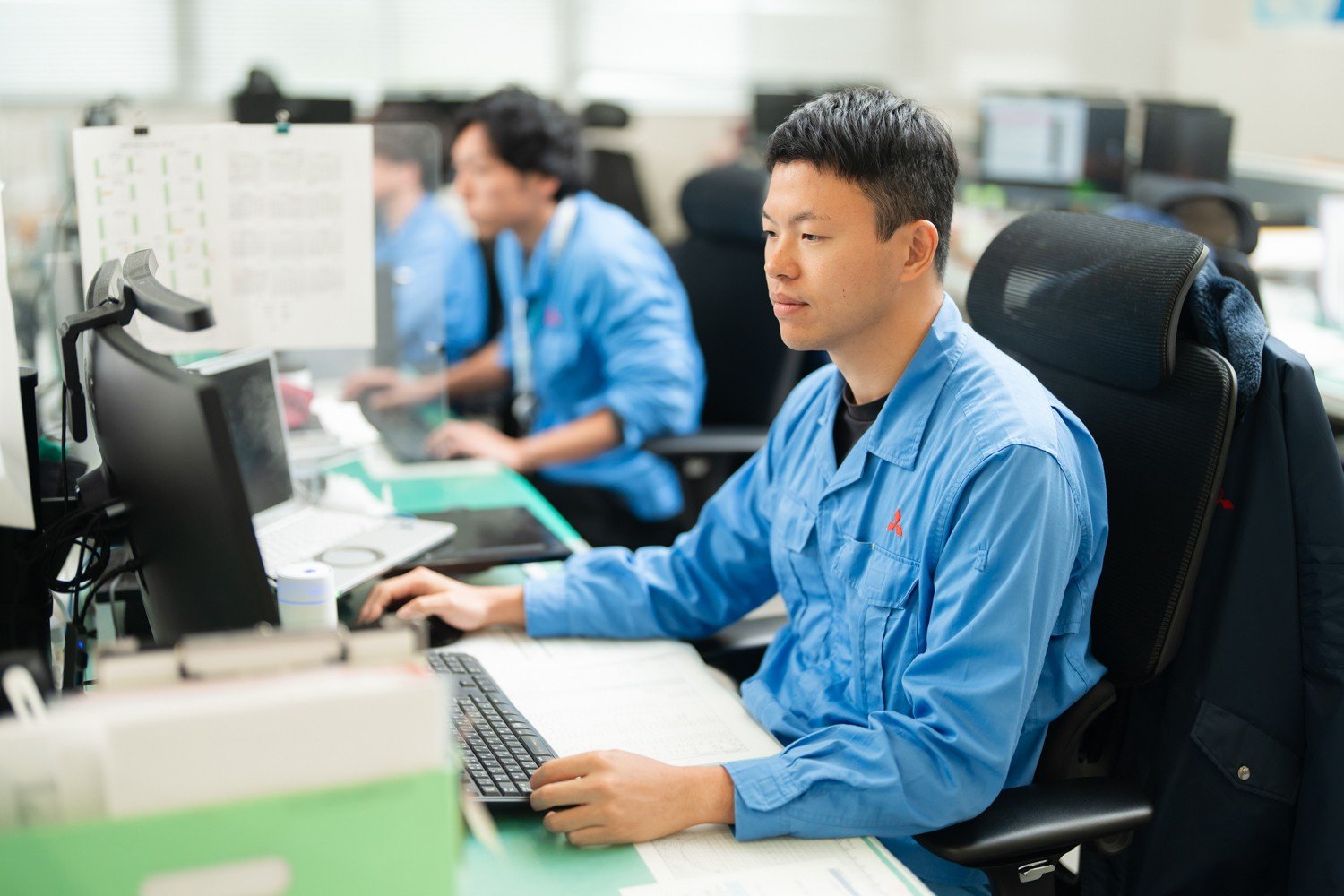 三菱重工という名前から「堅い会社」「年功序列」というイメージを持たれることもありますが、実際にはフランクなコミュニケーションができる職場です。20〜30代のメンバーが多く、業務で迷ったときには気軽に声をかけあえる距離感があります。
