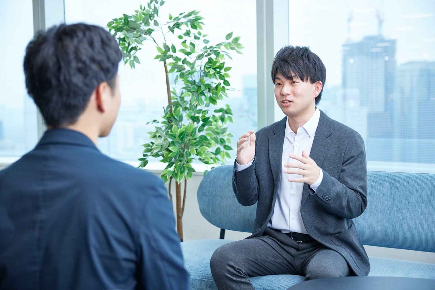 社員同士の距離が近いから困りごと なんかもすぐに相 談できますね。 チャットを送ると、誰でも解決に向け たアドバイスをしてくれます。さらに ありがたいのは1聞いたら10教えて くれること。身 近に様々な分 野の エキスパートがいて、なんでも相談 できるからこそ、新しい挑戦への背中 を押してくれる環境なんです。