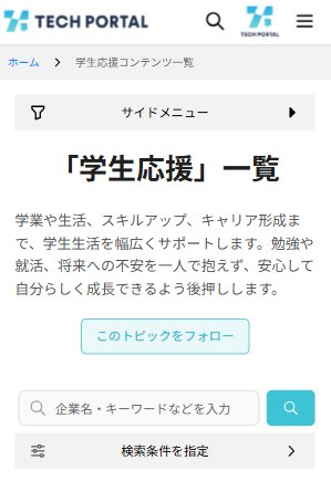 TECH PORTALの使い方や魅力の発信、生き方から大学生活、就活、社会人準備までフェーズごとに学べるコース別ステップ学習の提供など、