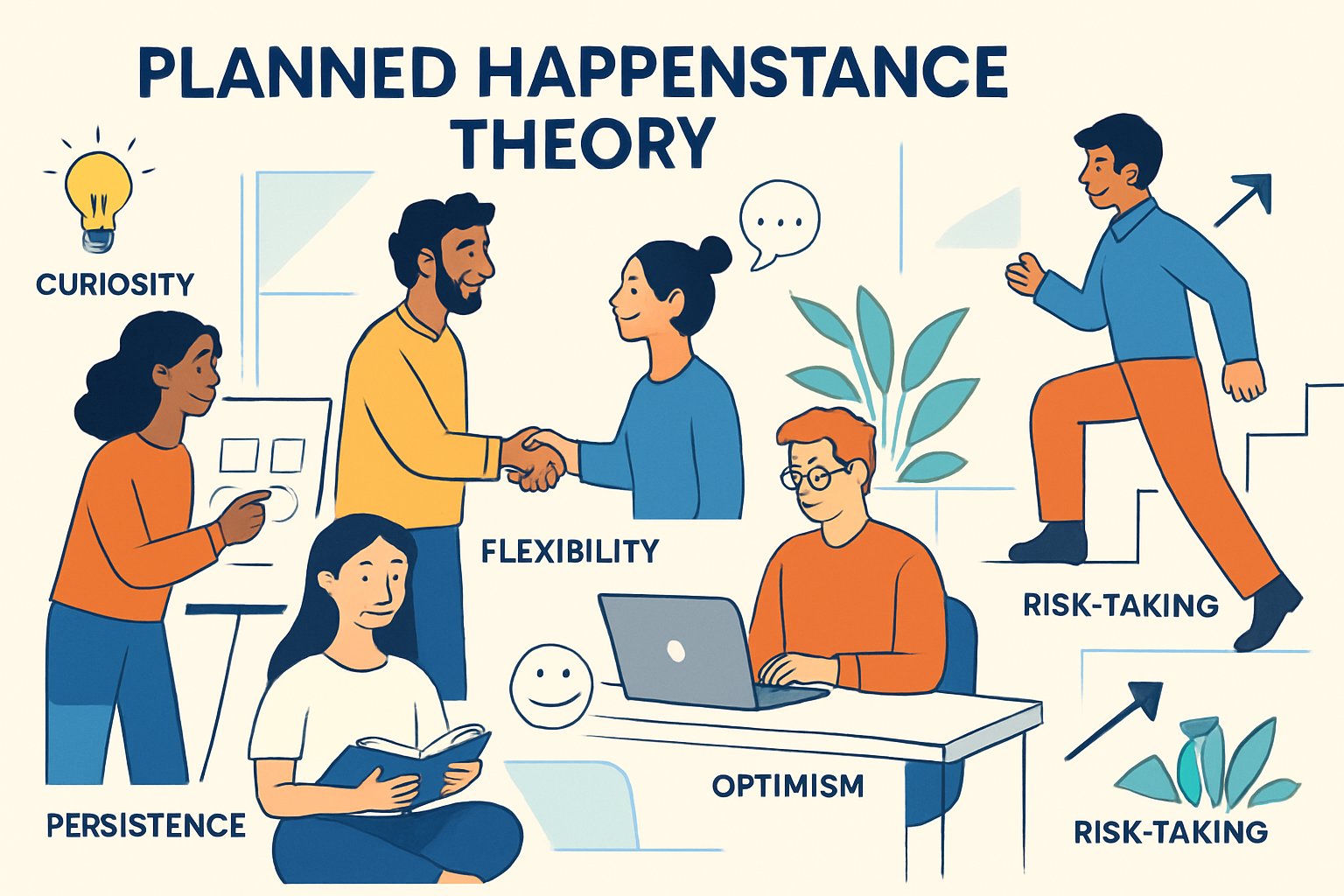 この理論の核心は、「個人のキャリアの8割は予想しない偶発的な事象によって決定される」というものだ。つまり、どれだけ綿密に計画しても、実際のキャリアは偶然の出会い、予期せぬ異動、思いがけないチャンスによって形作られる。