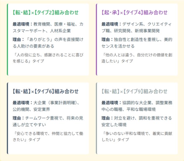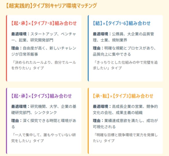 エニアグラムタイプと起承転結フェーズを組み合わせることで、君たちにとって理想的な職場環境や働き方が見えてくる。