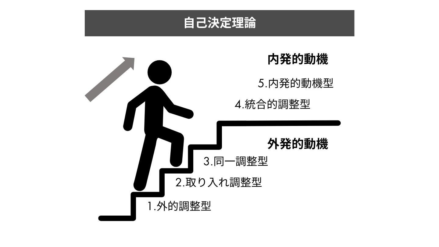 心理学者エドワード・デシ、リチャード・ライアンの自己決定理論(SDT)を手がかりに、動機の段階を把握し、外発→内発へと質を高めよう。