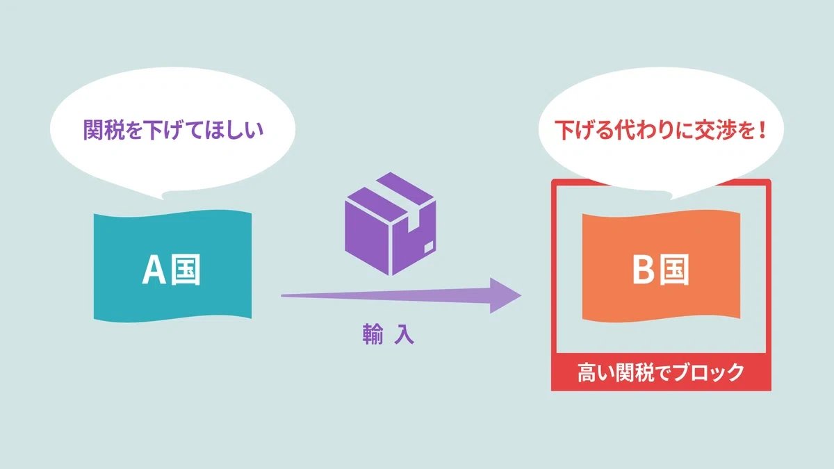 また、外交の切り札という側面もあります。関税は相手国の産業や雇用に影響を及ぼす可能性も。例えば、A国がB国の輸出品に高い関税をかけると、その製品の価格は上がりA国で売れにくくなります。B国は企業の売上や国内の雇用にダメージを受けるため、A国に関税引き下げを求めざるを得ません。このように、関税は国が取引や交渉を進める上での有効なカードになっています。特にアメリカのような巨大な市場を持つ国にとっては、関税は強力な切り札です。