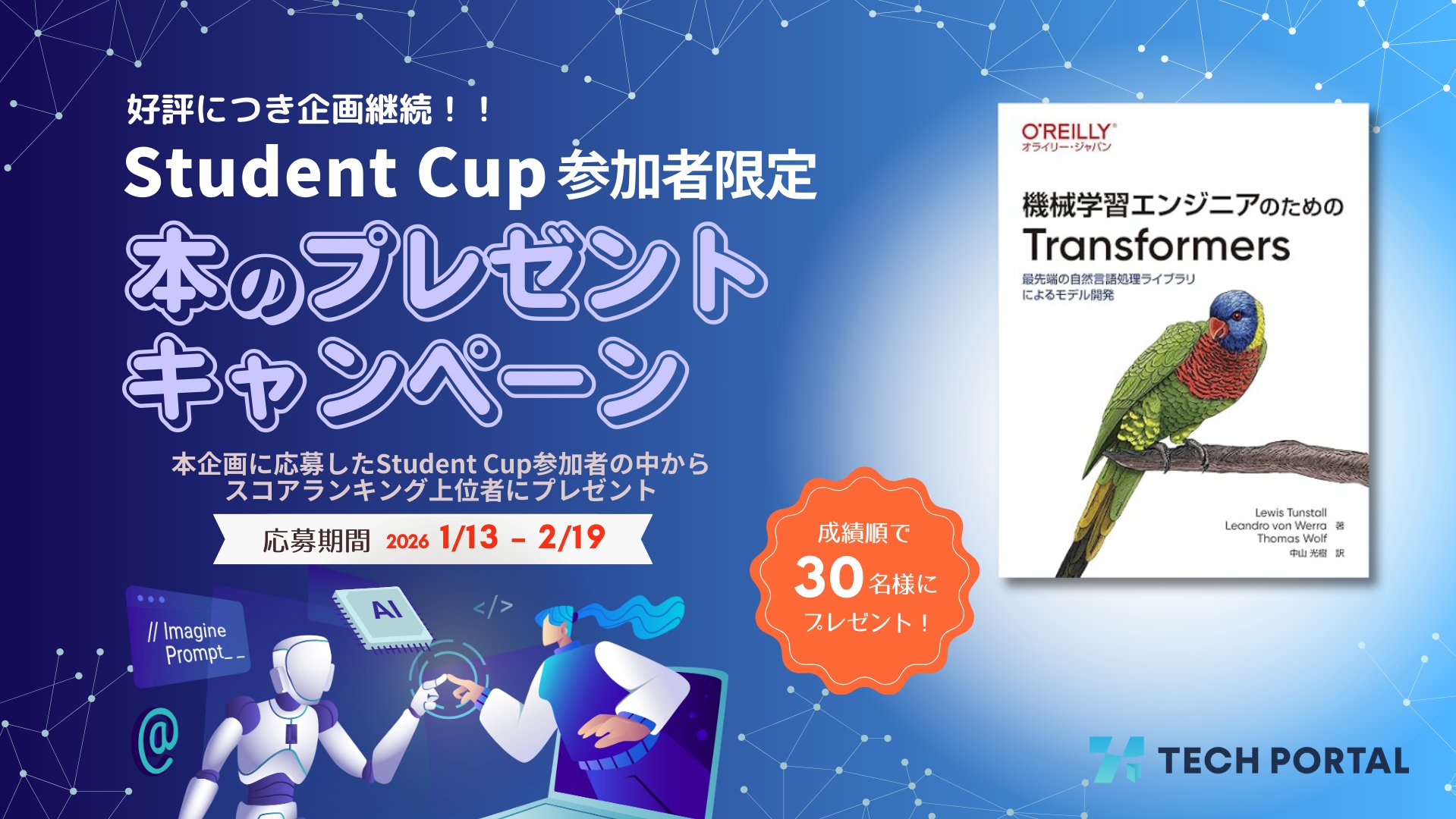 2026年1月のStudentCupへの参加者限定で本のプレゼントキャンペーンを開催します。機械学習エンジニア必携の技術書を選定しました。