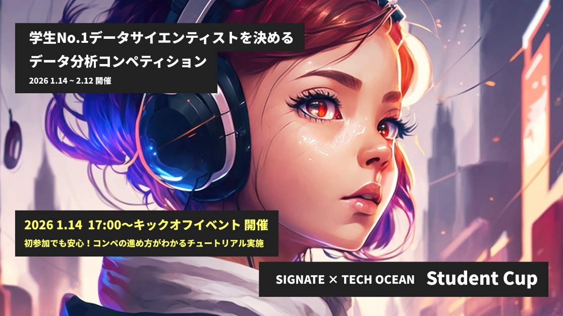 「SIGNATE Student Cup」は、定期開催しているデータサイエンススキルを競う学生限定のコンペティションで、これまで数々の入賞者を輩出してきました。