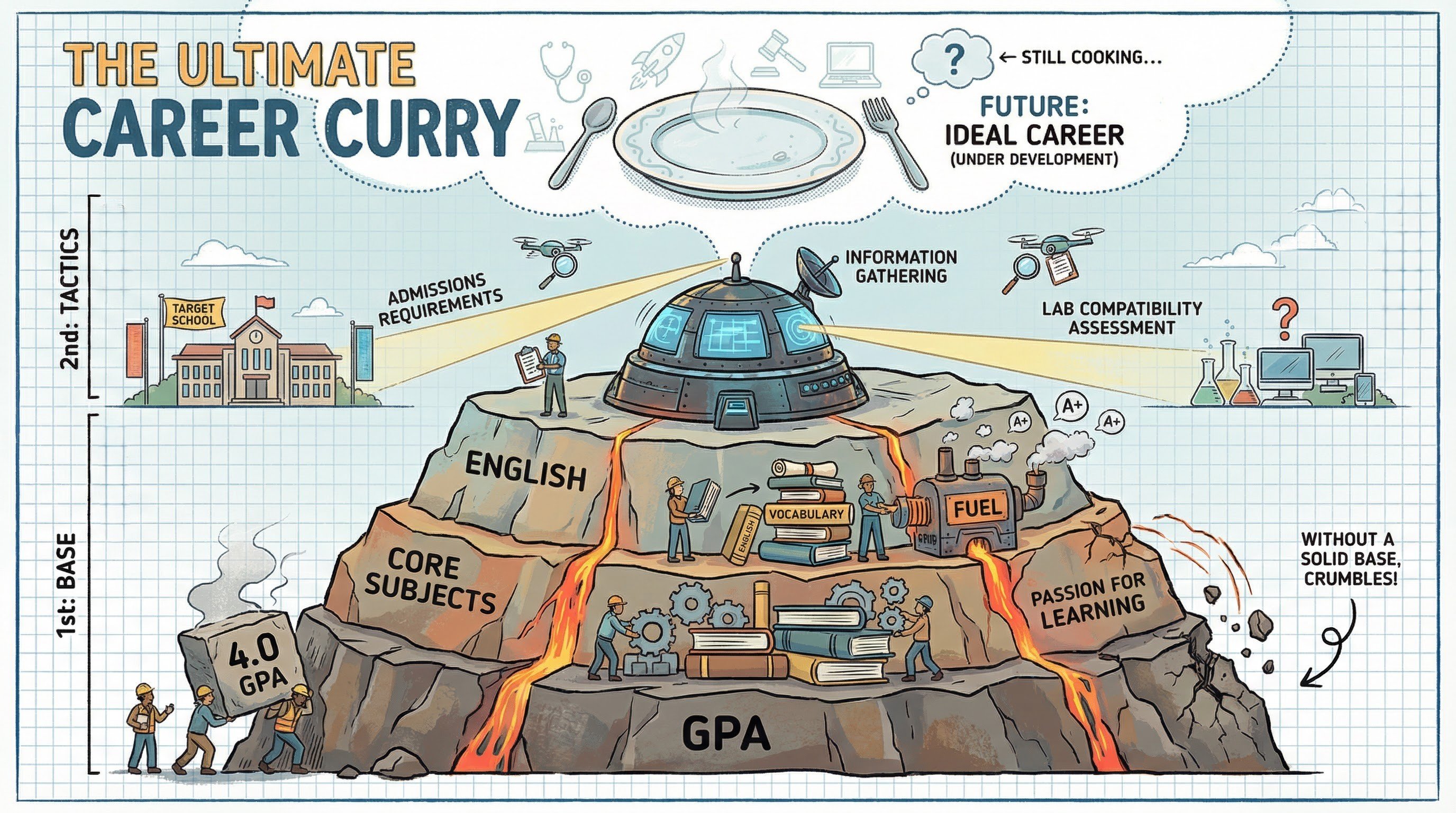 もちろん、今すぐ受験勉強を始めろなんて野暮なことは言わない。でも、院進という「熱々カレーライス」を最高の状態で完成させるためには、1〜2年生の段階でやっておくと効き目がデカい「極上の下ごしらえ」があるんだ。