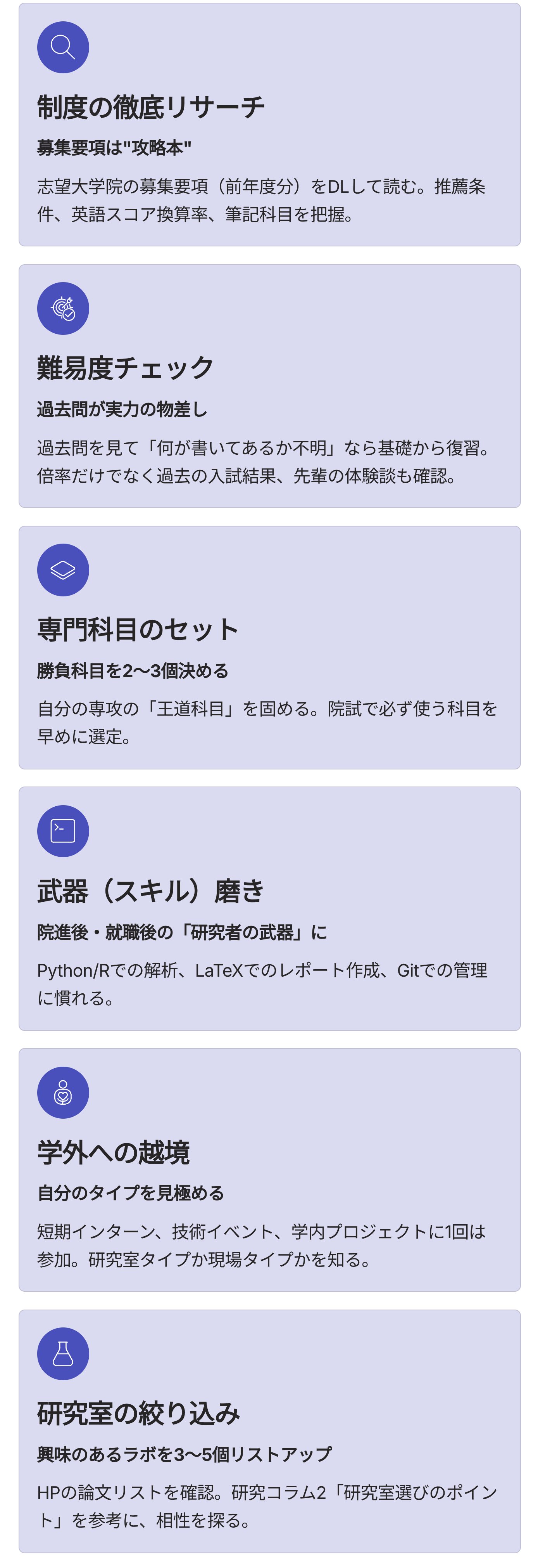 【4-2-1】準備ガイド:学部1~2年生 ― ”早すぎない”土台&情報戦略の極意|研究コラム4『院進準備』