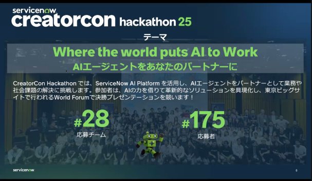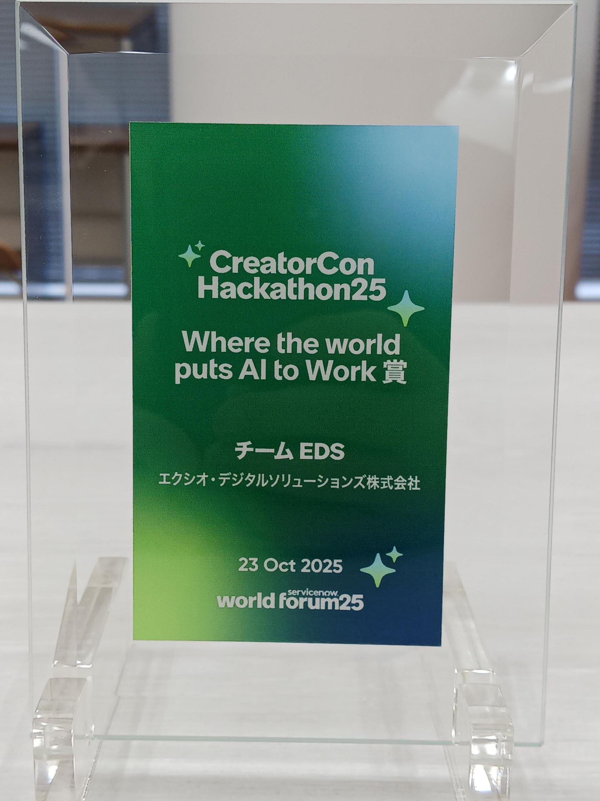 私たちはServiceNow社が主催した CreatorCon hackathon25 にチームEDSとして参加し、特別賞「Where the world puts AI to Work 賞」を受賞しました。