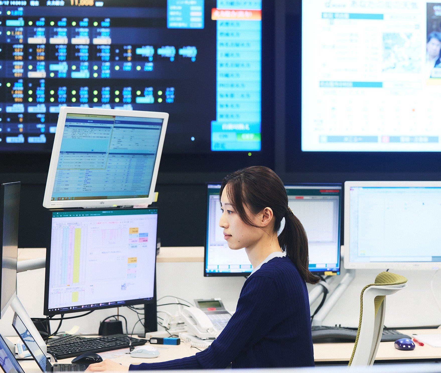 私たち、運用ユニットのメンバーは二交替制で仕事をしています。主な業務は、「当日の発電計画」「翌日の発電計画」「電力市場取引」の3つ。それらをローテーションで担当していくことになります。常に心がけているのは、お互いの業務を意識し、連携していくことです。すべての業務は密接に関係しているため、トラブルが発生した時などはメンバー同士が支え合って、乗り越えていく必要があるからです。